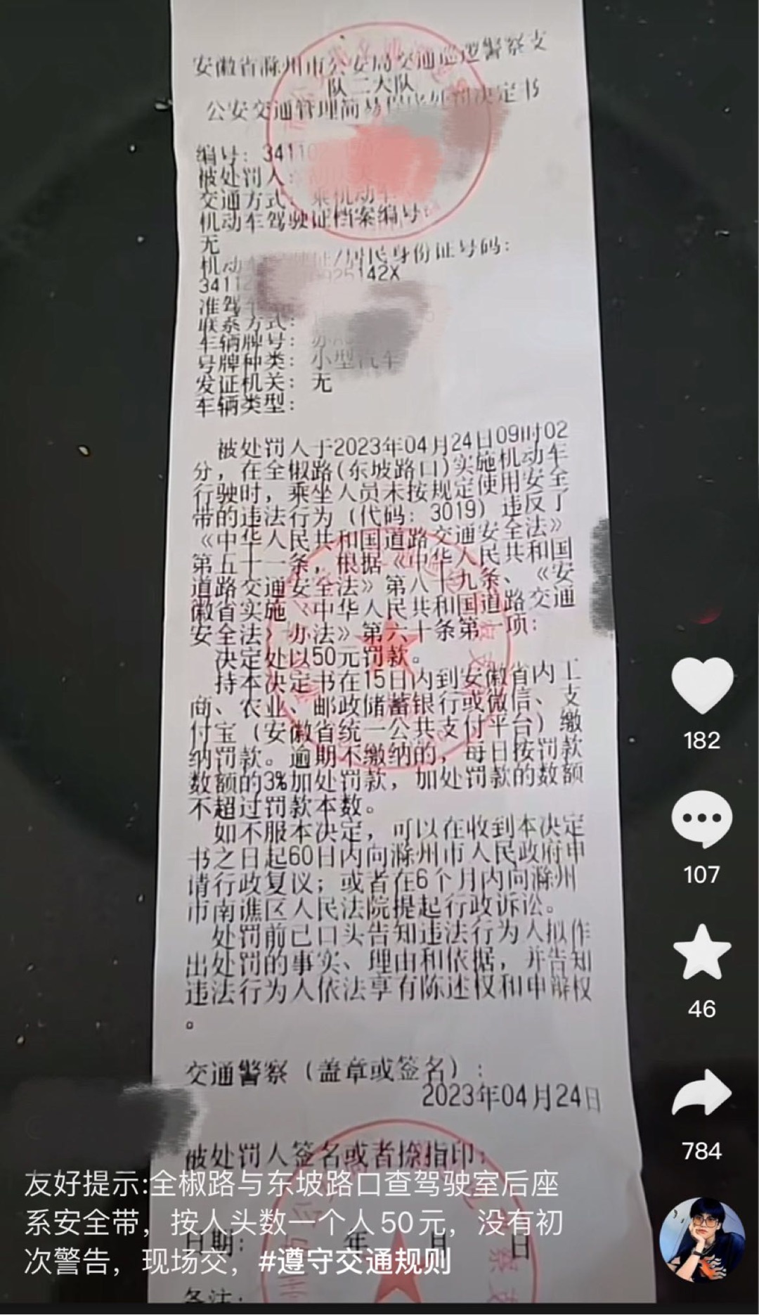 抖音上看到有同城的,开车后座没系安全带,扣了50块钱,以往也没见要扣这个钱啊!咋回事,最近怎么查的这么严