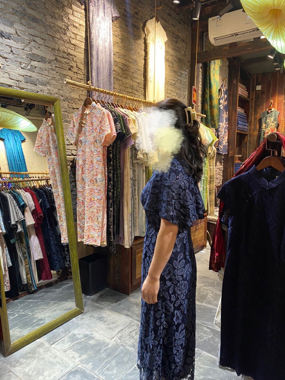 明天最后一场英语考完去接小孩,穿哪套去比较好看啊?今天考语文出来接小孩,小孩说希望我也和其他妈妈一样穿旗袍来,说希望看到漂亮的妈妈