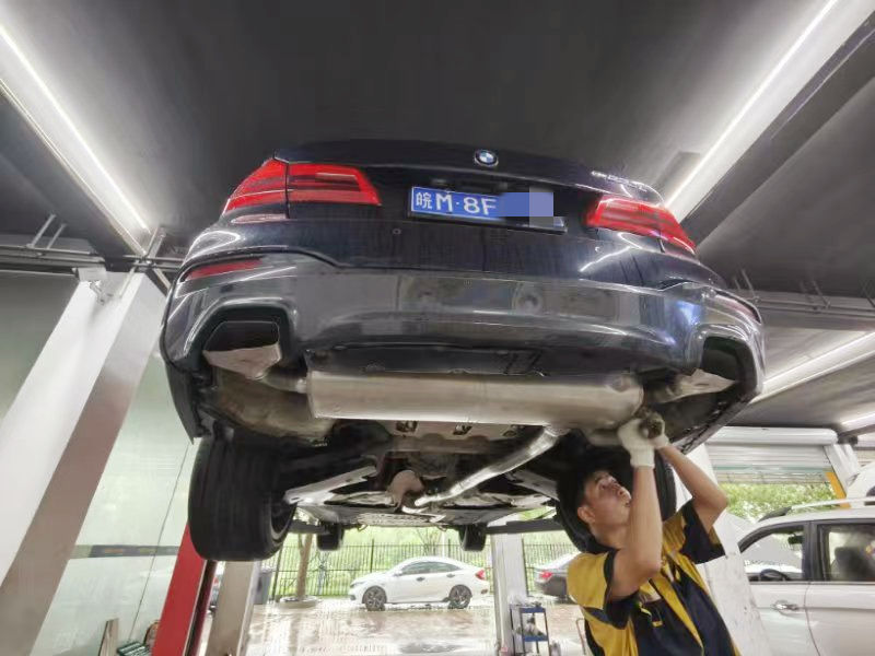 交巡警一大队民警,在辖区开展集中整治时,发现一辆号牌为皖M8F***的宝马轿车,涉嫌违法改装车辆外观、排气管等部件。