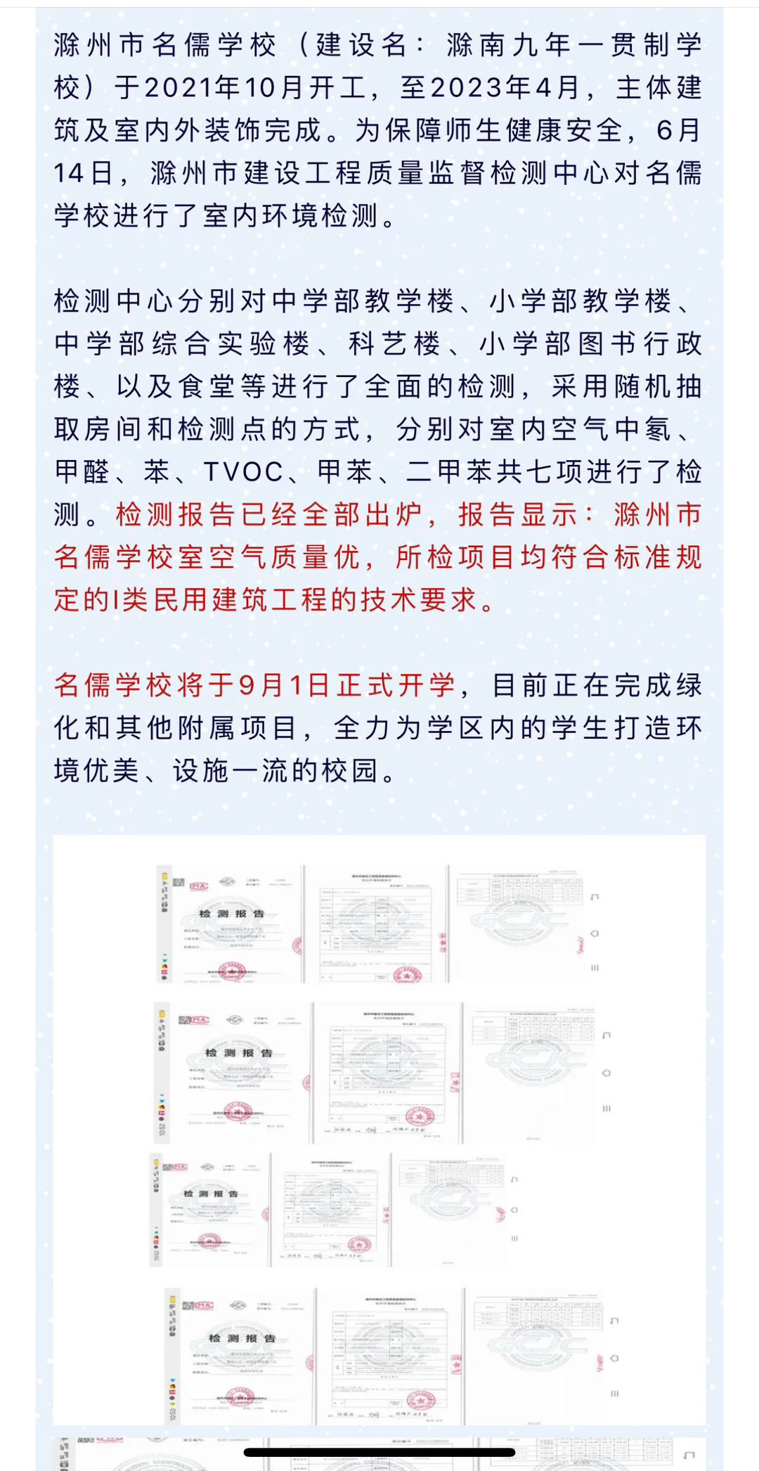 滁州名儒学校今年9月份开学,室内环境检测之前也发布说合格了,但是现场还有好多渣土车什么还在施工,现在马上都8月了,还在施工,9月真适合开学吗