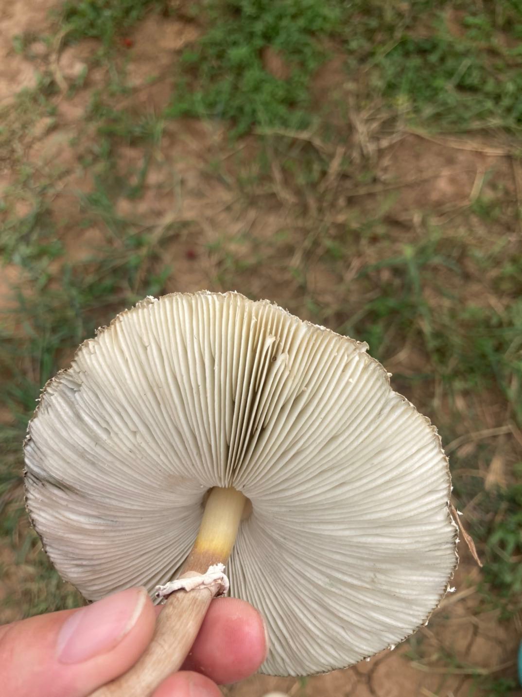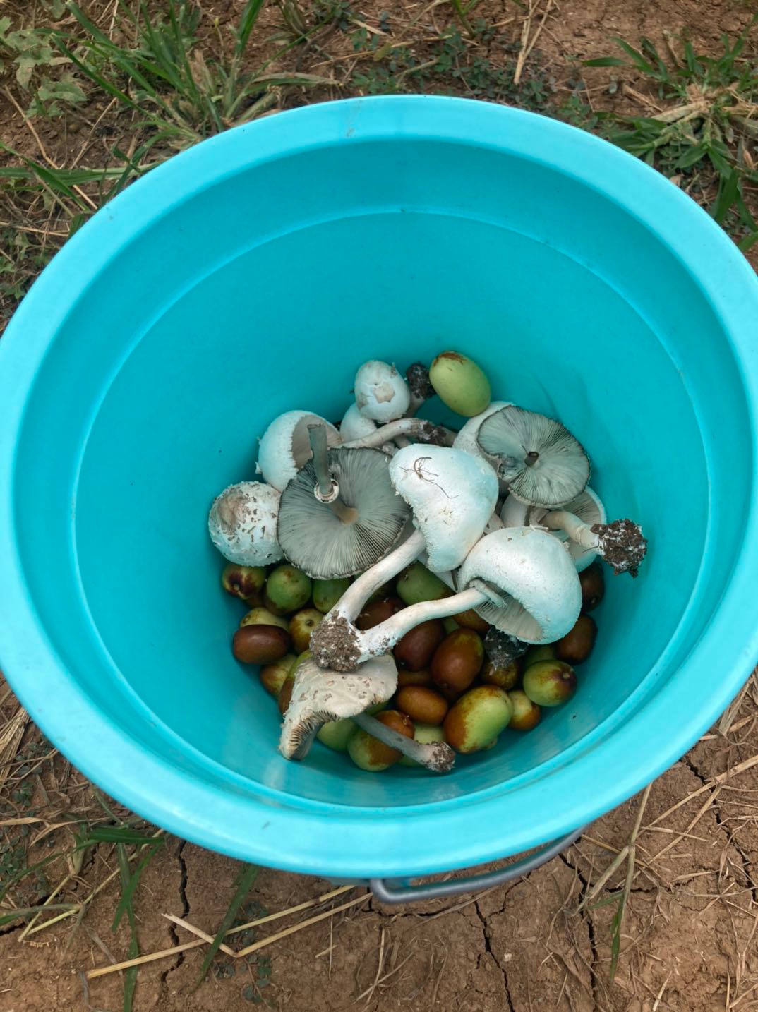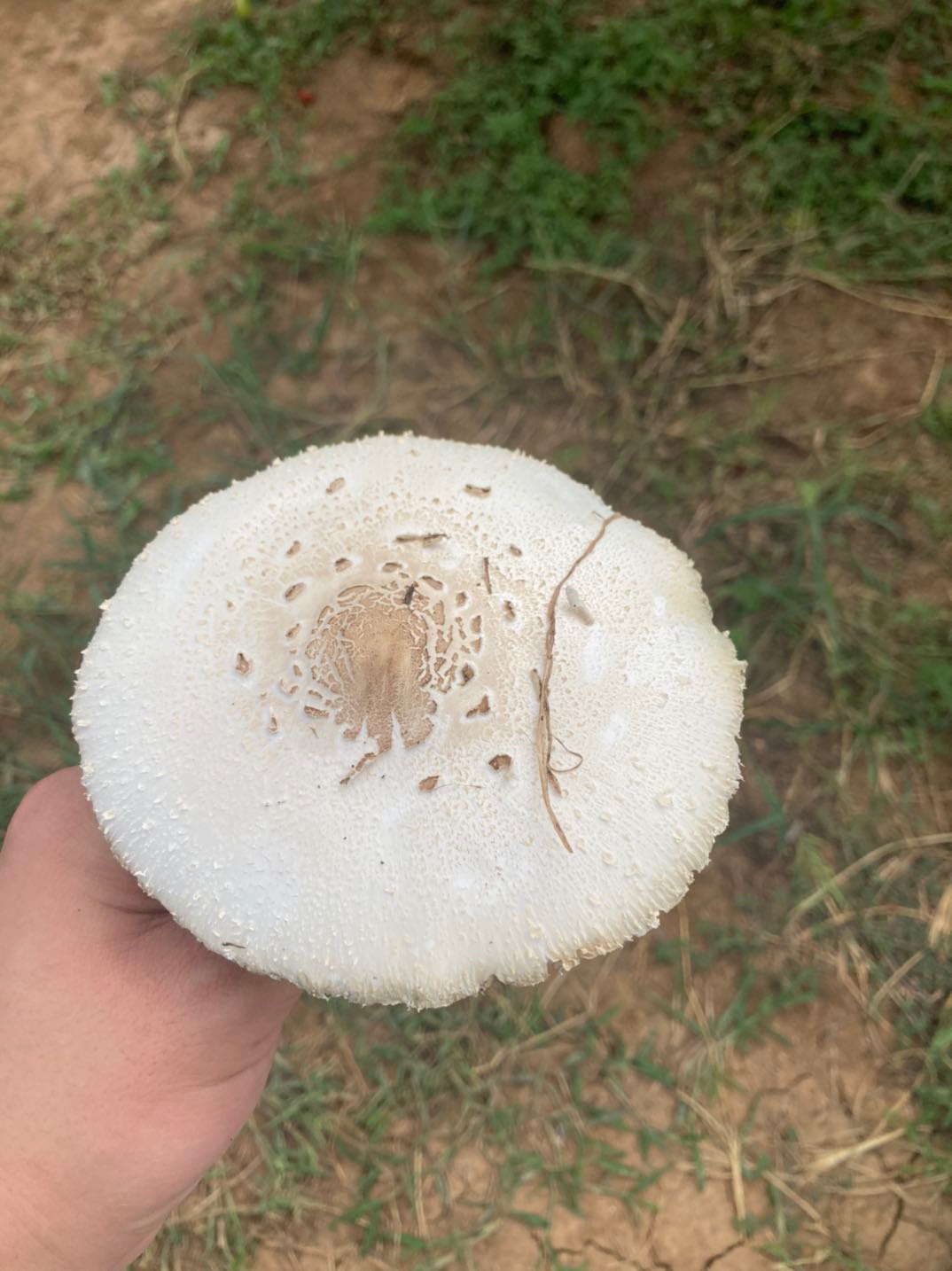 枣园里摘着枣子发现好多蘑菇,好像小时候奶奶带我捡的蘑菇,什么品种能不能吃,在线等挺急的