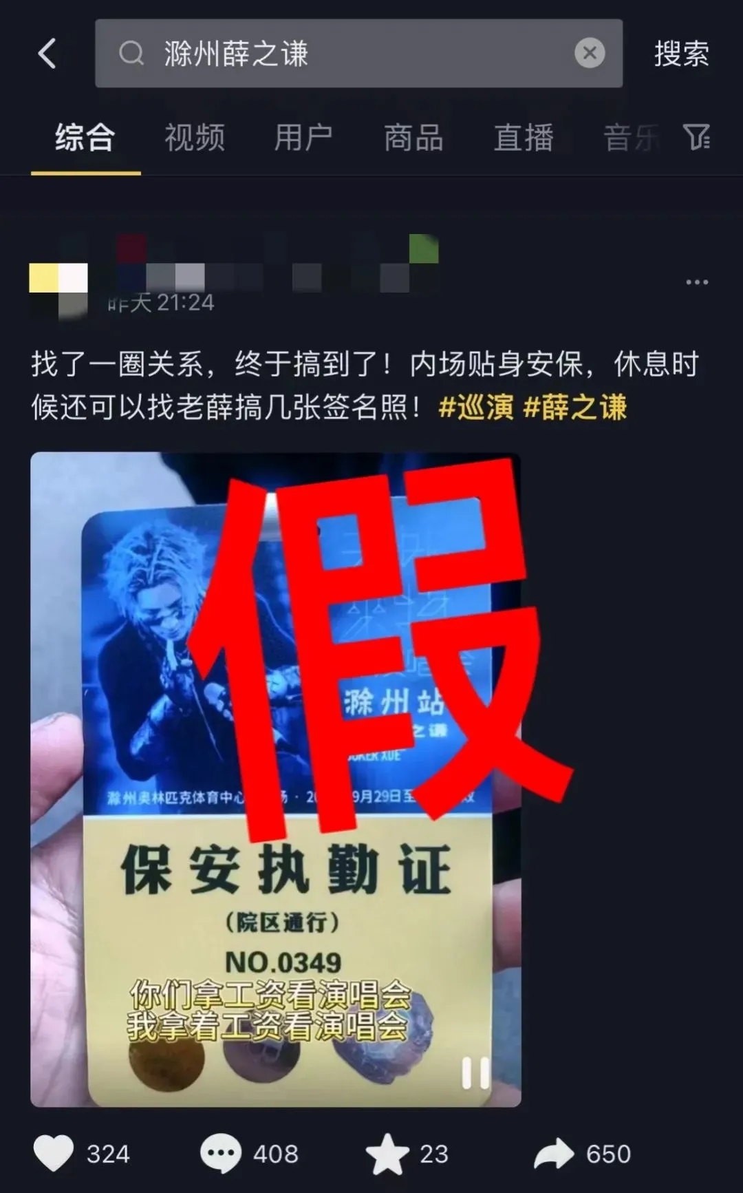 大家不要轻信网上的招聘信息,本场演出目前未对外招聘任何与本场活动相关的临时安保人员、志愿者。薛之谦团队会根据滁州市公安局的统一部署,聘请专业的安保人员进行本次活动的安全维护工作。歌迷们不要相信关于演唱会招聘保安等不实信息!