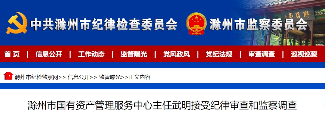 滁州市国有资产管理服务中心主任武明涉嫌严重违纪违法,目前正接受滁州市纪委监委纪律审查和监察调查。来源:滁州市纪委监委