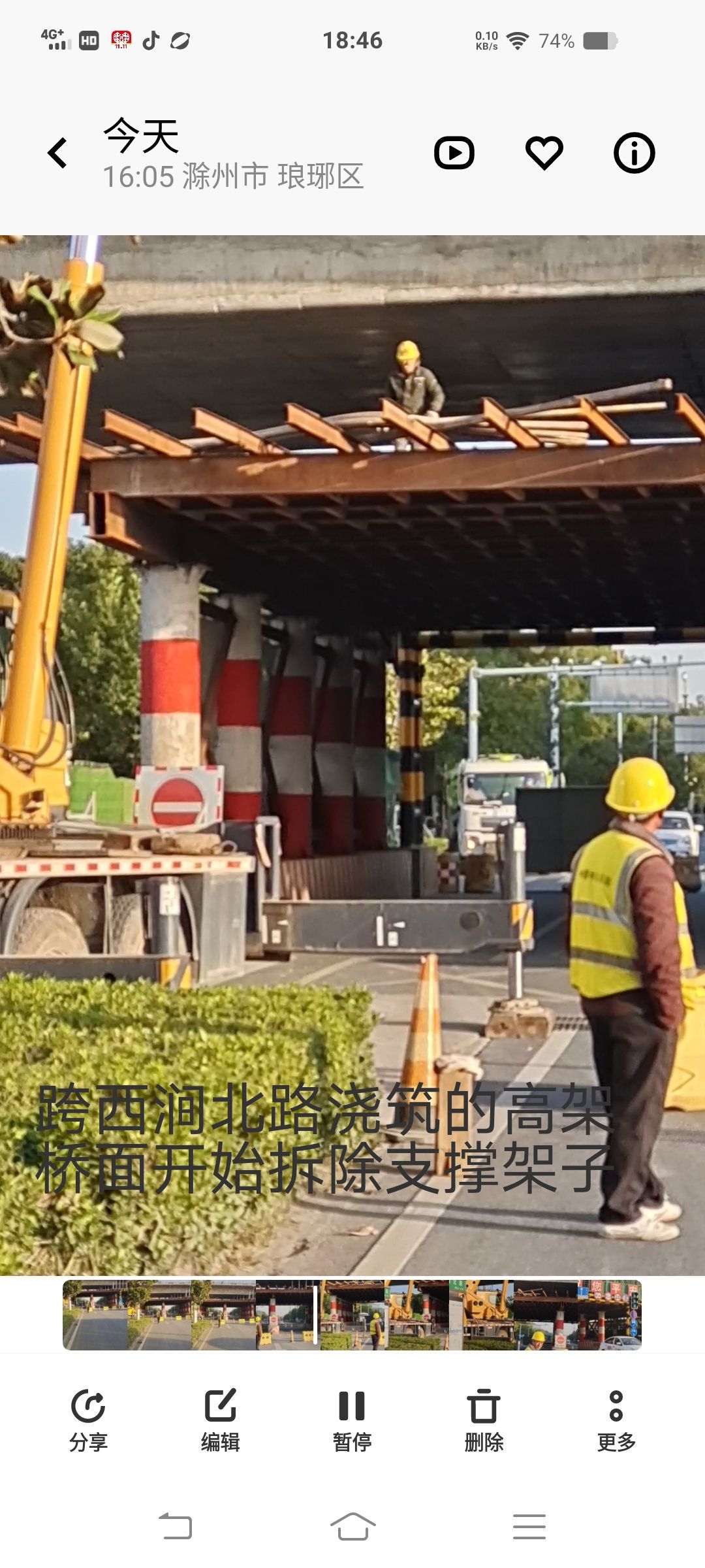 另外,横跨西涧北路与紫薇北路交叉口的浇筑桥梁路段也已经开始拆除了浇筑桥梁的支架。证明,浇筑的桥梁已经达到了凝固期标准。为此,笔者向现场施工人员询问了有关封闭路段开通时间问题,据施工人员获悉的情况介绍说:主桥春节前可以架设完成,但桥面及善后施工还要数月时间(应该是按合同工期交付),但连接陈湾大桥的下穿京沪铁路双桥涵道路有望在春节前后提前开通,届时可以大大缓解过往北门与琅琊新区的通行压力。。。