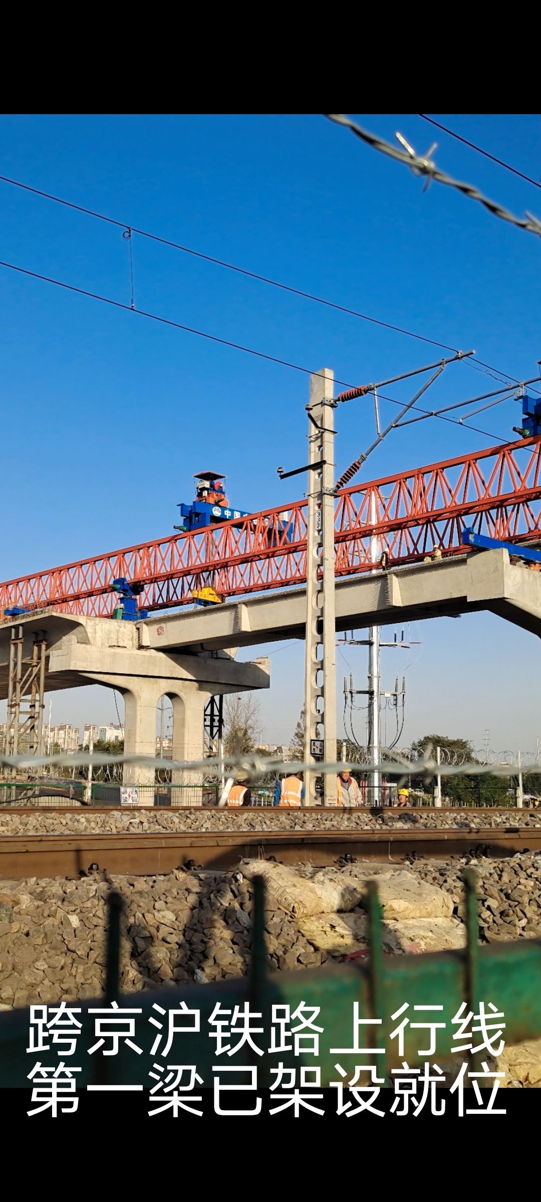 日前,在建的将军山路高架桥跨京沪铁路架梁施工正紧锣密鼓的进行中,此次铁路“天窗期”施工并未采取以往全封闭施工手段,笔者看到施工中仍有客货列车在慢行通过。施工利用了列车运行的间隙时间有条不紊的紧张进行!