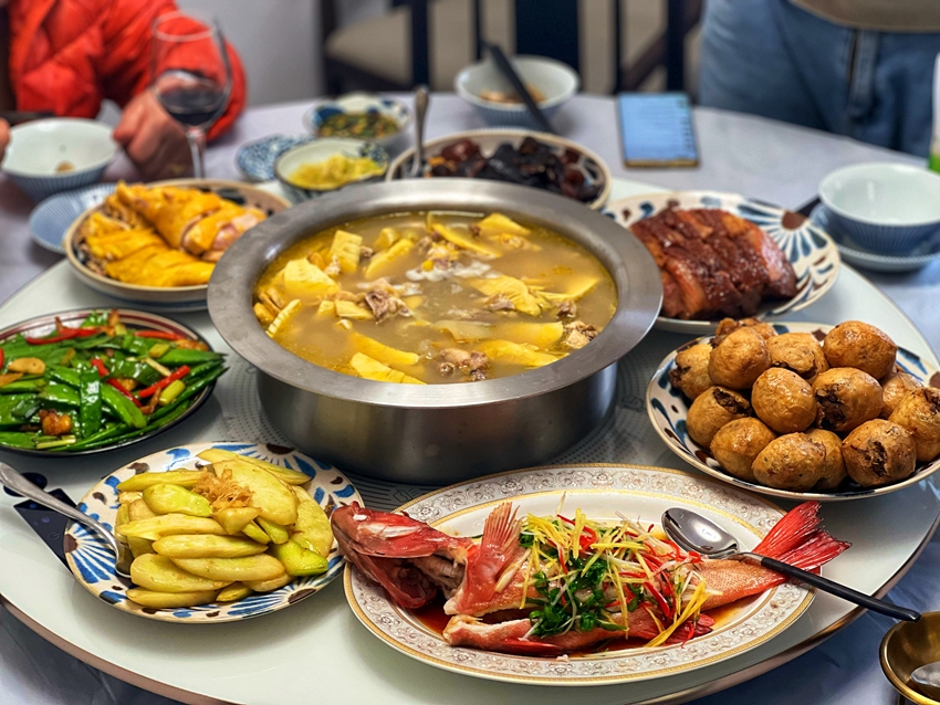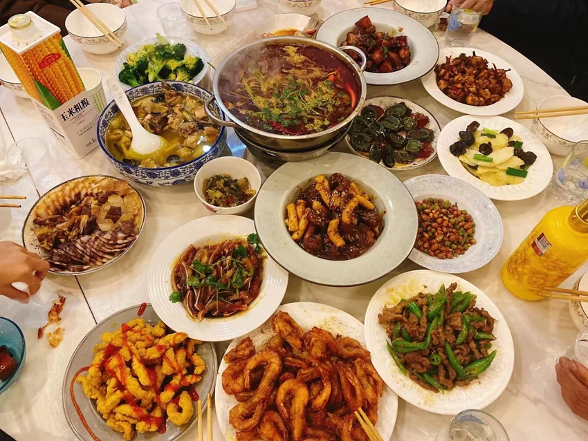 嗞啦啦炒菜、炸鱼、炸丸子的声音,