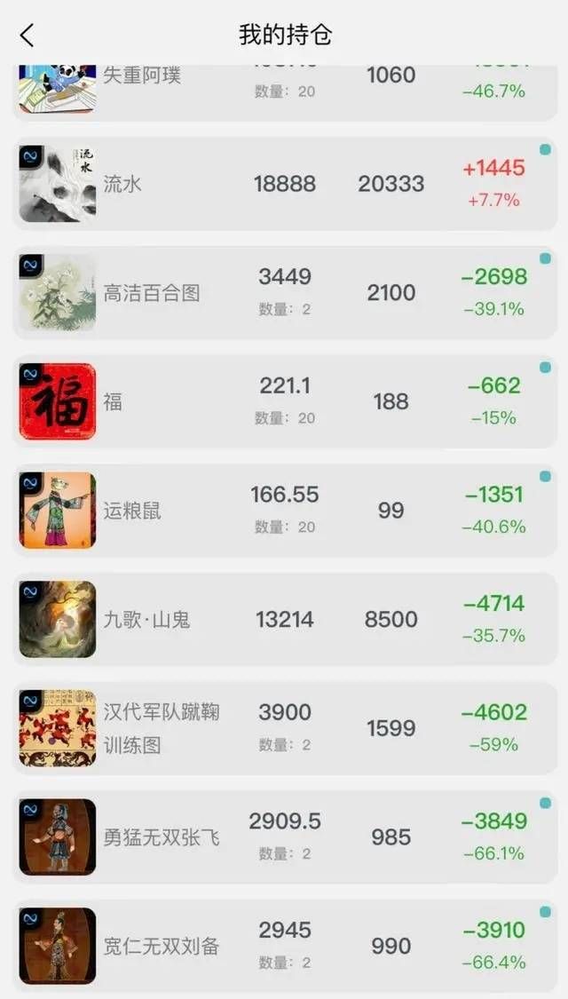 这种对半砍的玩法,张晖也察觉出了不对劲,但还是决定继续买入。每个月一发工资,他全投进十八数藏,甚至还想办法从其他地方弄钱。2022年底,张晖已经亏了20多万,他唯一的想法是把亏损的再赚回来。这时候,平台显示已有藏品炒到18.5万,全平台流通市值14.48亿元。