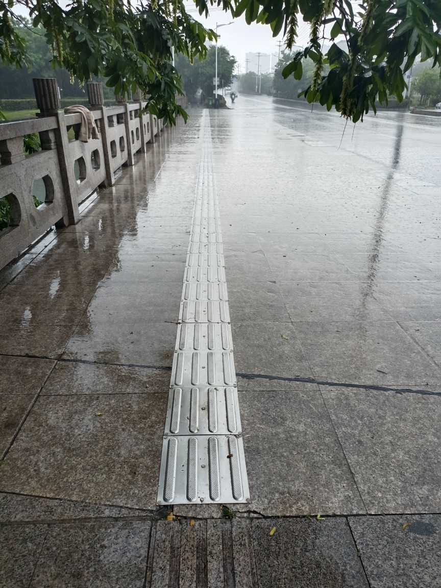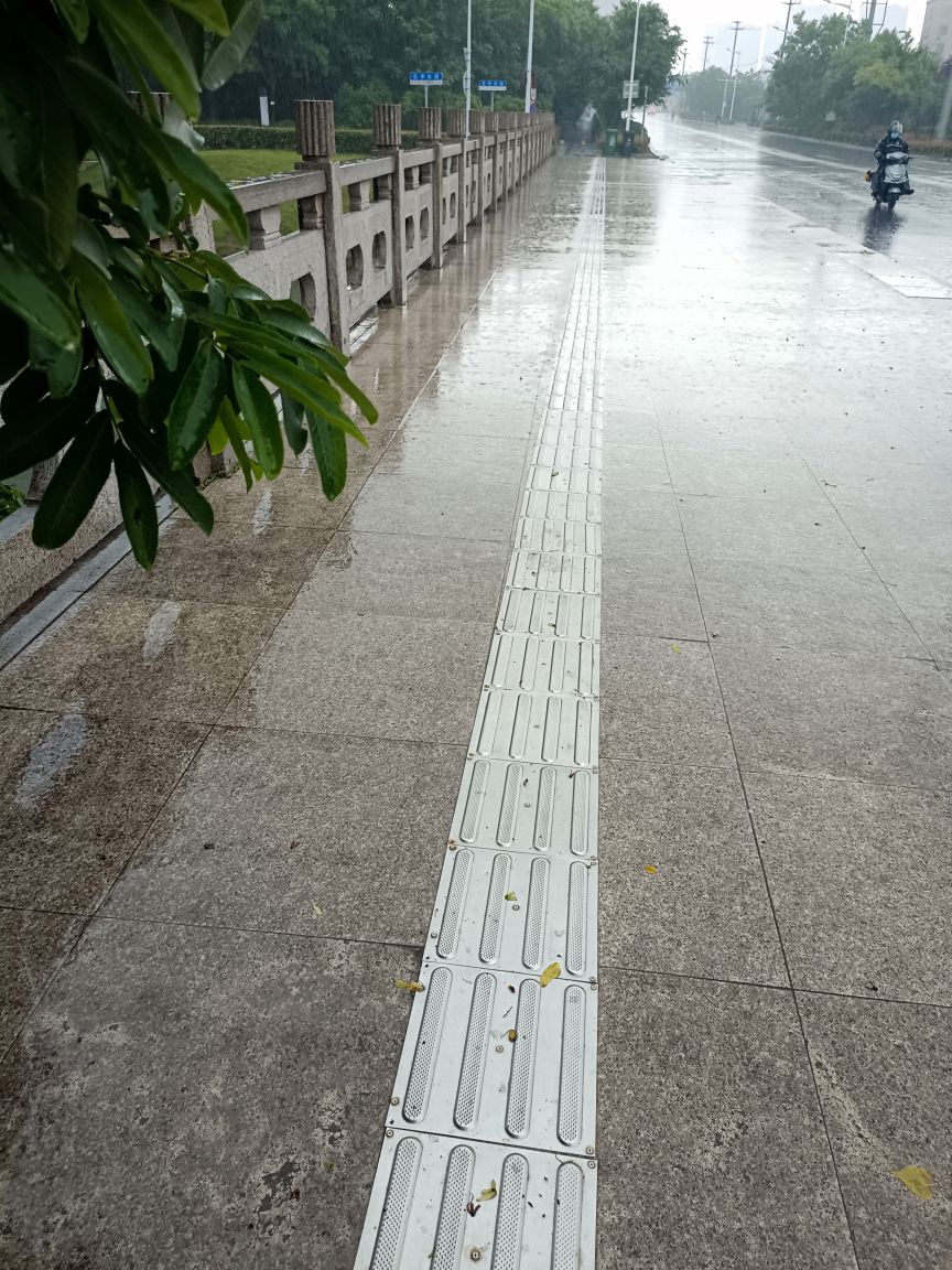 这种盲道,平时还好,下雨天太滑了,不仅没有防滑效果甚至加剧了光滑程度,别说盲人走了,我刚才走差点滑倒,像鞋底抹油的感觉。