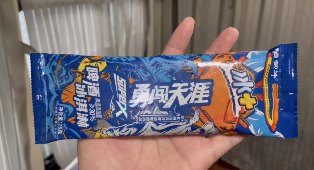 一款名为“勇闯天涯”的啤酒冰淇淋 火爆网络! 因该款冰淇淋含有 酒精度≥3.8% 啤酒添加量≥30%的特性 吸引了不少网友 买来尝鲜!