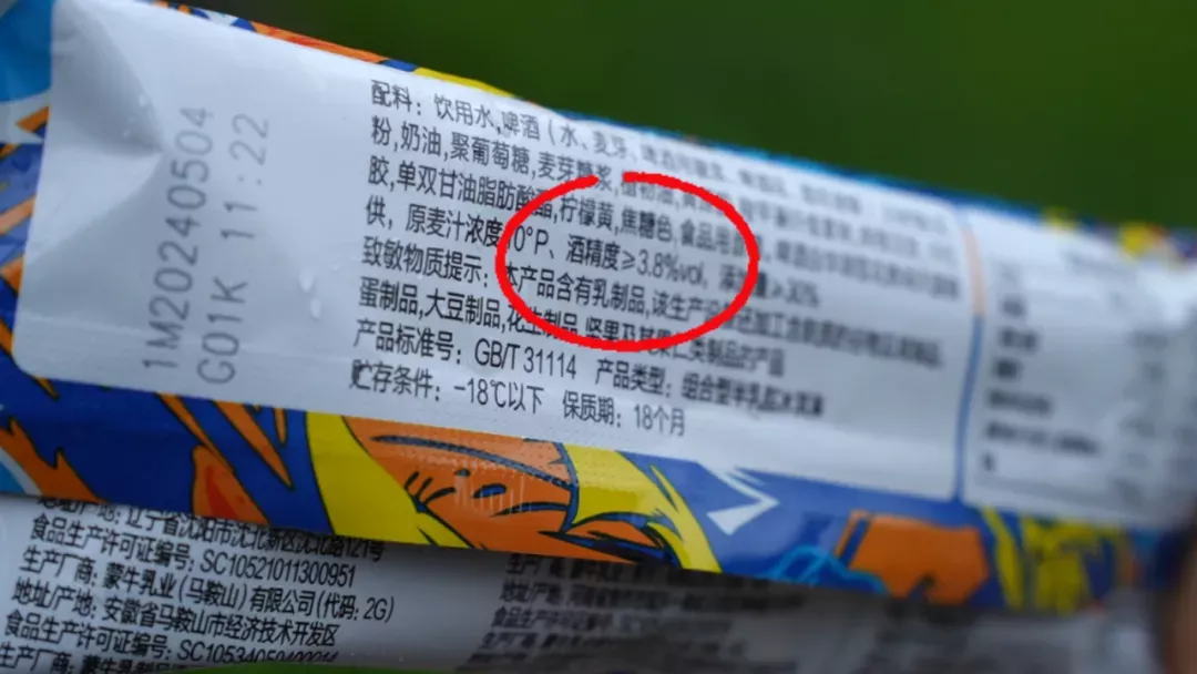 酒精含量达78mg/100ml 6月21日下午 记者在阜城双清路一家便利店 看到这款“勇闯天涯”啤酒冰淇淋 配料表显示 配料为饮用水、啤酒 白砂糖、乳粉、奶油等 原麦汁浓度10°P 酒精度≥3.8% 啤酒添加量≥30%。 据店家表示 该款雪糕近期刚刚上市 因为属于含有“啤酒口味” 吸引了不少人尝鲜