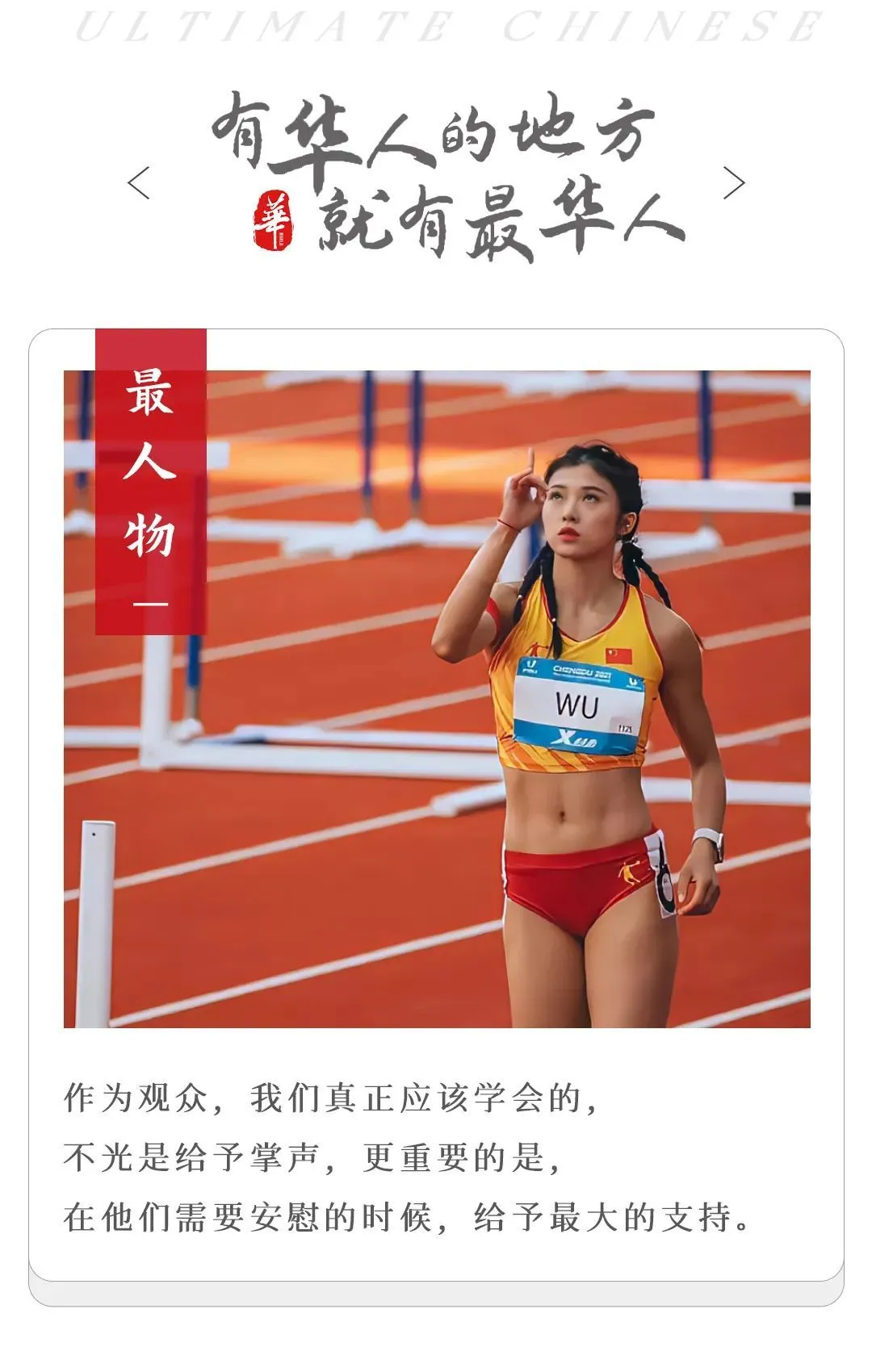 中华儿女向来团结坚韧,我们赢得了苦难,也包容得了中国健儿。
