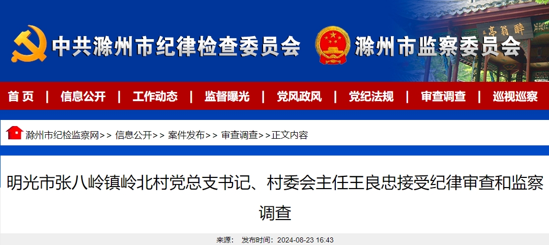 明光市张八岭镇岭北村党总支书记、村委会主任王良忠涉嫌严重违纪违法,经滁州市纪委监委指定管辖,目前正接受来安县纪委监委纪律审查和监察调查。(滁州市纪委监委)来源:滁州市纪检监察网