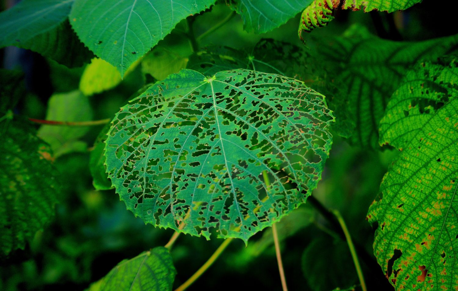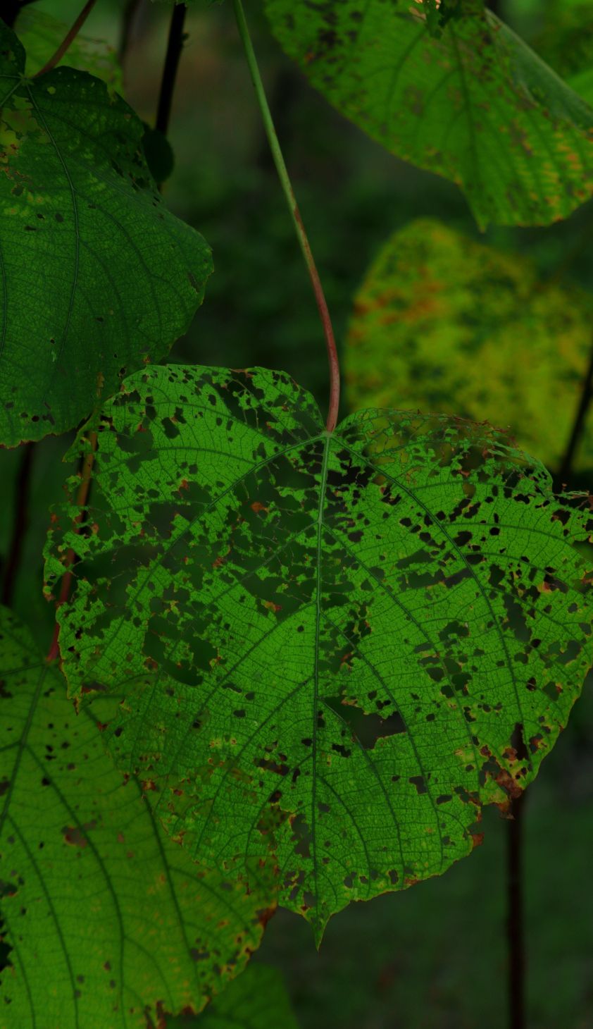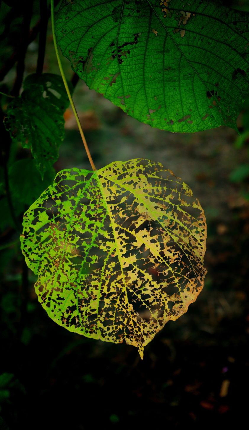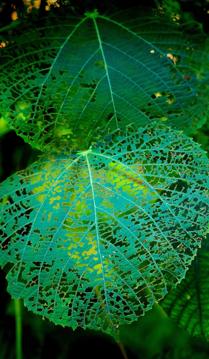美,有千万种,残缺的也是一种美!今天路过,树叶被虫子雕刻镂空,真的很美!