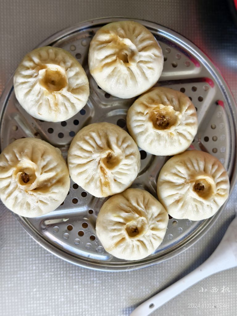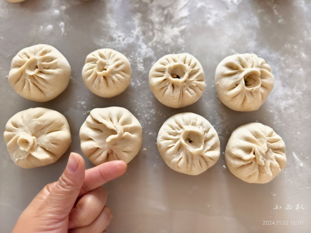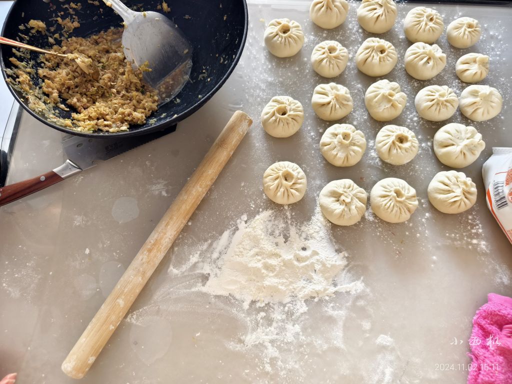 白菜猪肉粉丝鸡蛋馅儿,自己醒点面,我们坐外面包包子,两个小孩在房间过家家~