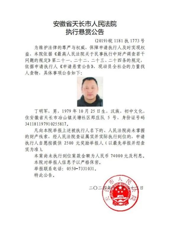 为切实保护债权人的合法权益,加强信用机制建设,打击被执行人逃避执行的行为,本院依据《最高人民法院关于民事执行中财产调查若干问题的规定》第二十一、二十二、二十三、二十四条的规定以及申请执行人的执行悬赏申请,天长市人民法院决定发布执行悬赏公告,对案件中的被执行人下落和财产提供线索者予以奖励。