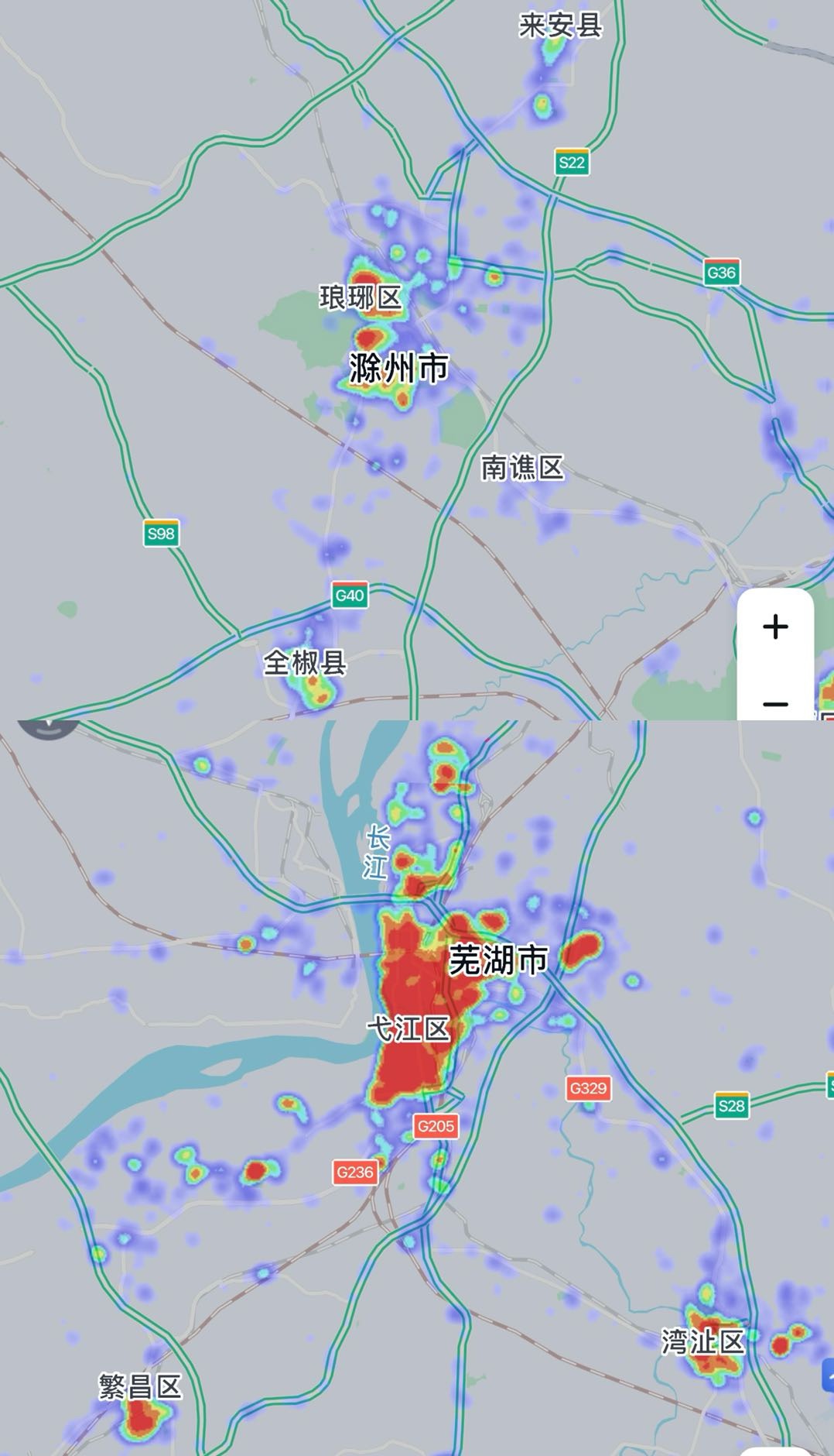 题主标定:滁州与芜湖相同比例图。但是,缺乏可信度!