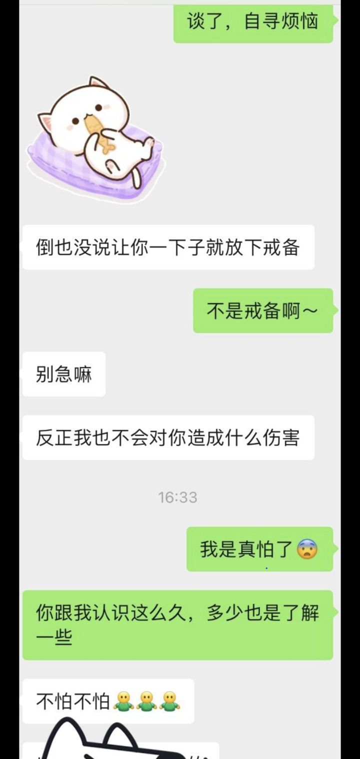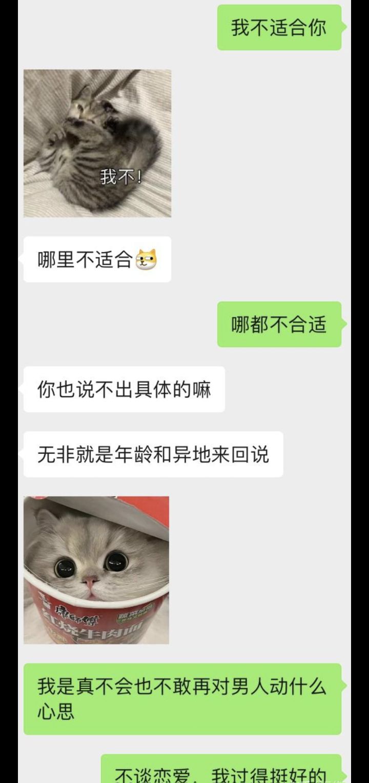 昨晚和小男生聊了很多,长话短说就是给他说通了,俩人不合适,我没谈恋爱的想法……他也听进去了。