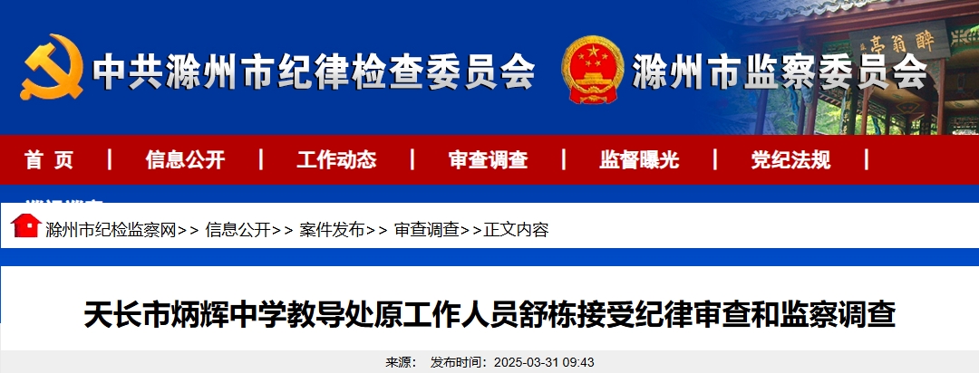 [滁州城事] 速看!滁州天长市炳辉中学教导处原工作人员被查,涉嫌严重违纪违法! |