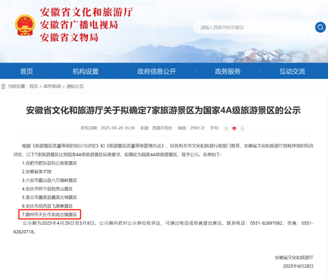 安徽省文化和旅游厅发布