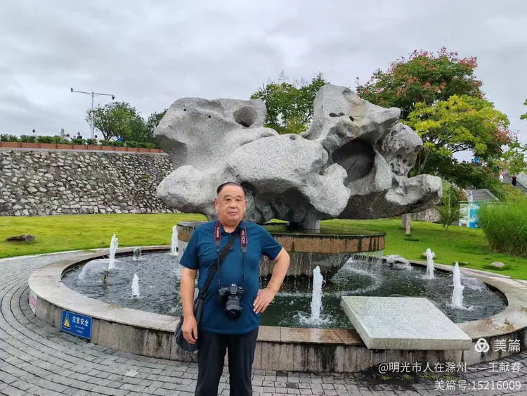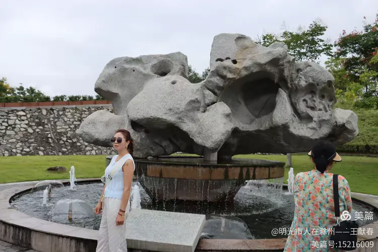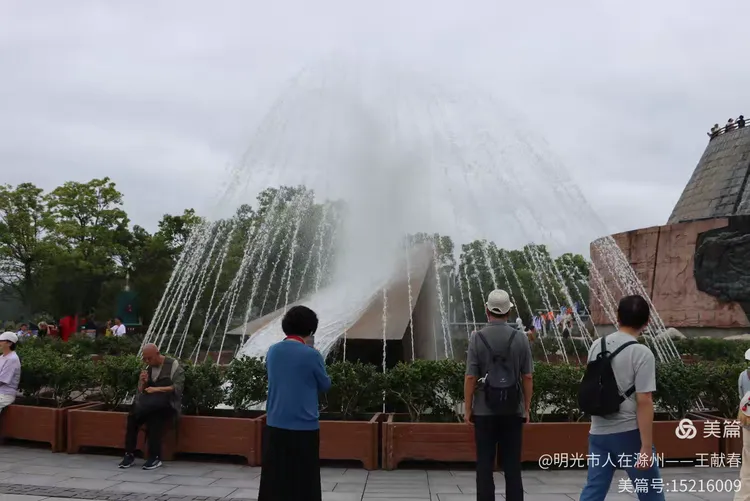 沿着观景台的步道缓缓前行,我来到了一处喷泉前。喷泉旁已经有不少游客在拍照和观赏,背景是云雾缭绕的山脉和工业设施。我站在喷泉旁,感受着水珠溅落在脸上的清凉,心中满是满足。这次的旅程,终于没有了遗憾。