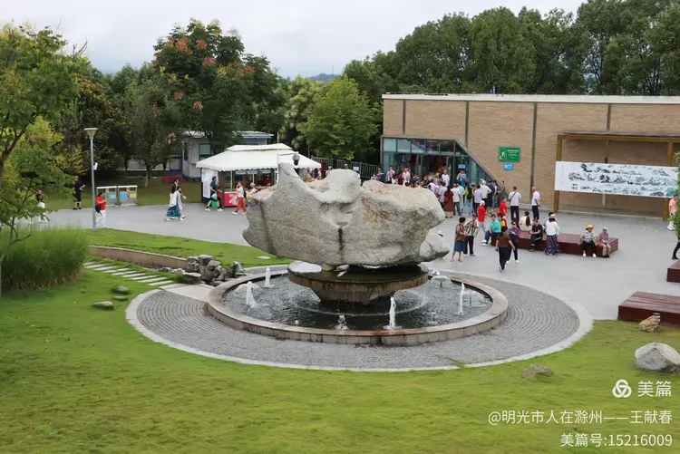 穿过山谷,我来到了一座宽阔的石板路,路边有绿植和花坛,人们在散步或行走,背景是茂密的树木和远处的山峦。天空依旧多云,但阳光偶尔从云层中透出,洒在石板路上,显得格外温暖。我走在石板路上,仿佛回到了七年前的那个夏天,只是这次,我有了更多的时间去细细品味。