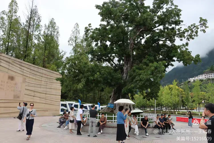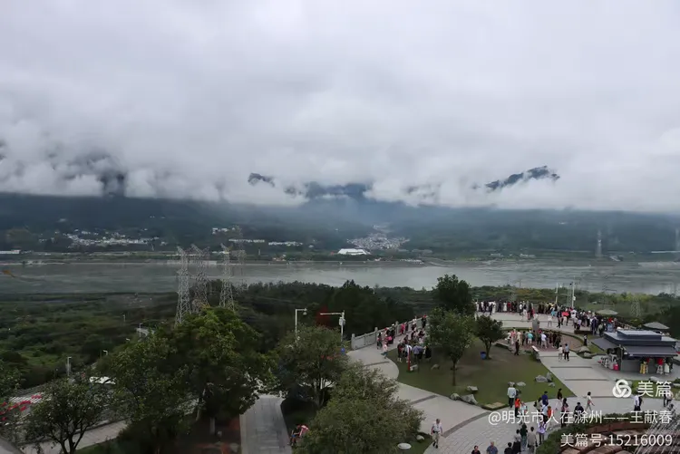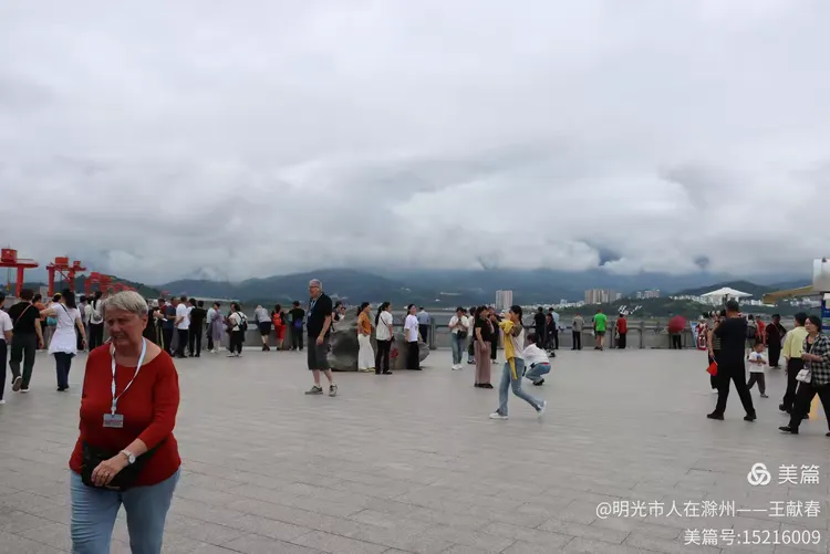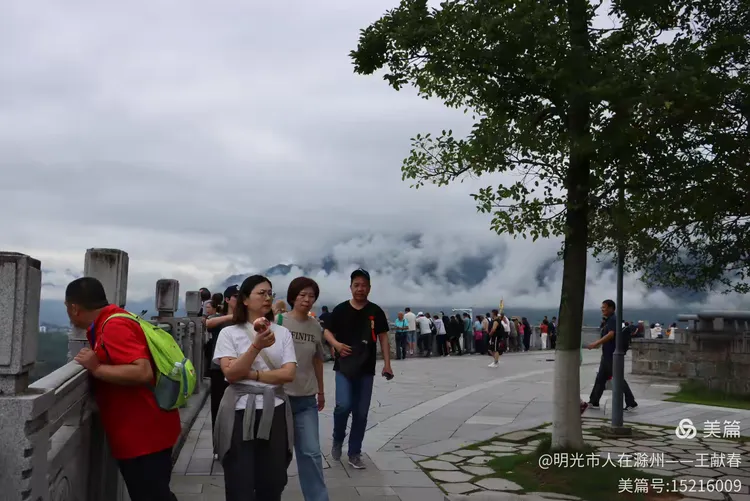 沿着广场继续走,我来到了一处开阔的观景台。这里聚集了不少游客,大家都站在栏杆旁,欣赏着远处的景色。背景是覆盖着薄雾的山脉,云雾缭绕,仿佛一幅水墨画。我站在人群中,望着那片朦胧的山峦,心中不禁感叹大自然的鬼斧神工。