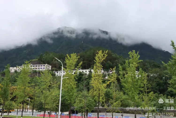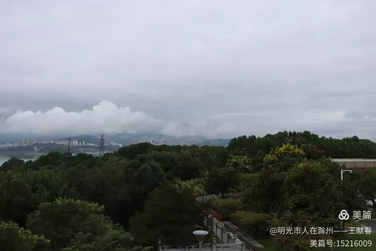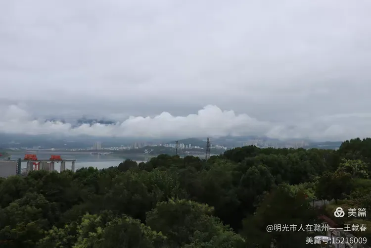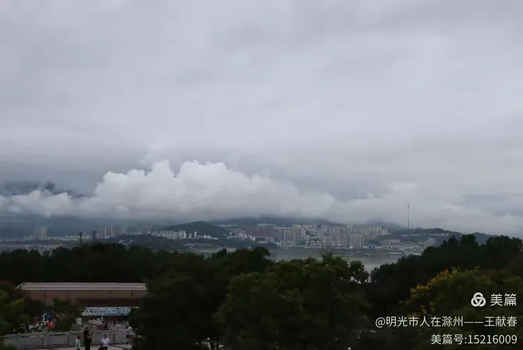 继续前行,我来到了一片被云雾笼罩的区域,远处可以看到城市的轮廓,近处是郁郁葱葱的树木和一些低矮的建筑物。整体氛围显得宁静而神秘,仿佛进入了一个与世隔绝的世界。我站在一处高地上,望着远处的城市轮廓,心中满是感慨。
