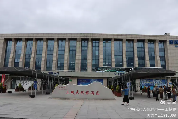 清晨的阳光还未完全穿透云层,我便早早出发,沿着熟悉的路线前往三峡大坝。一路上,山峦起伏,云雾缭绕,仿佛在为我铺开一幅久违的画卷。进入景区,首先映入眼帘的是那座现代化的入口建筑,上方“三峡大坝旅游区”的标识依旧醒目。游客们已经排起了长队,我也加入了这期待已久的队伍中,心中满是重游故地的激动。