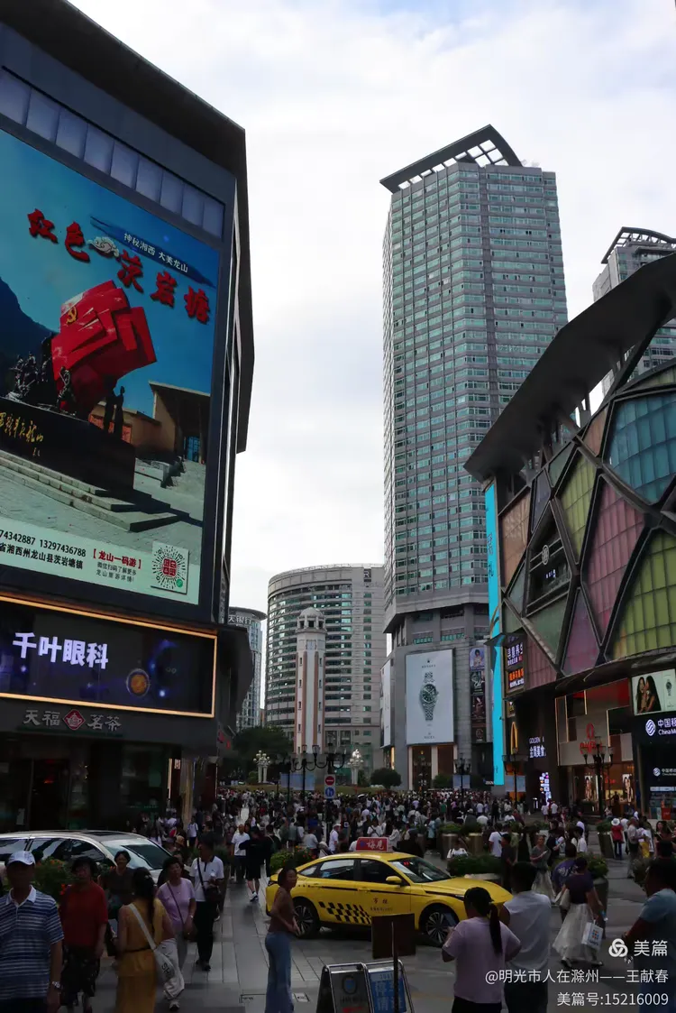 站在解放碑前,抬头仰望那八角形的碑顶,耳边是川流不息的人群和车流声。三十年前,这里虽然也热闹,但街道狭窄,建筑低矮,如今四周高楼林立,霓虹闪烁,商业气息扑面而来。我站在碑下,仿佛站在时间的交汇点,一边是历史的回响,一边是现代的脉动。