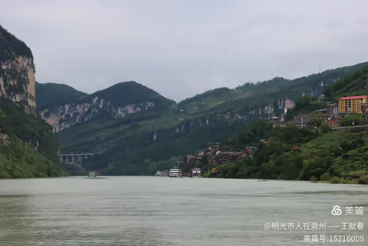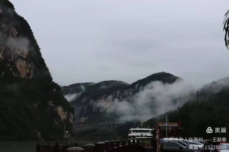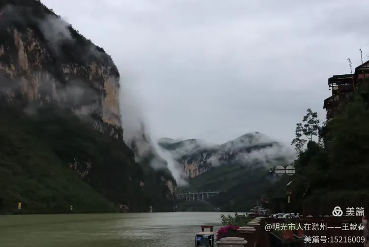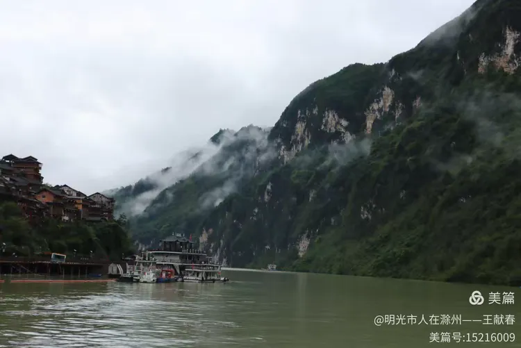 来到江边码头,山峦巍峨,云雾缭绕,船只停泊,民居依山而建,景色壮丽,充满自然与人文的和谐。我站在码头边,望着远处的山峰,心中充满了对这片土地的敬畏与热爱。