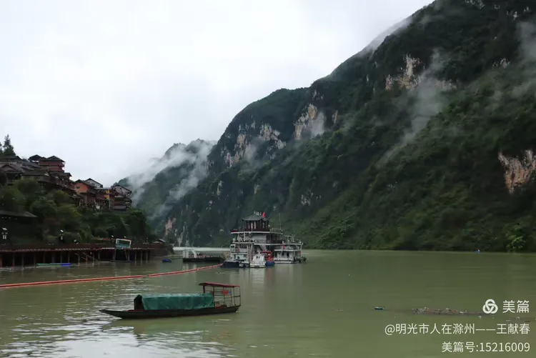 25年-09-15今天上午在重庆酉阳县龚滩古镇观看老建筑并剩船欣赏乌江画廊两岸极佳风光!