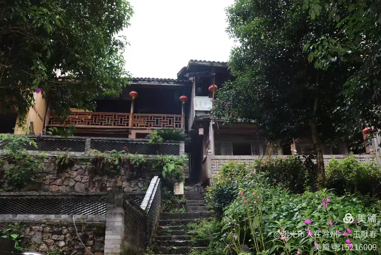 在古镇的一条青石小巷中,我感受到了浓厚的乡村气息。木质的房屋错落有致,绿植环绕,藤蔓垂挂,红灯笼点缀其间,小巷幽静而古朴。我仿佛穿越了时光,回到了那个没有喧嚣的年代。