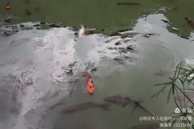 继续前行,便来到了一片宁静的湖景,湖中游动着几条鱼,湖边有两座传统的木制亭子,周围环绕着茂密的树木和植被,空气中弥漫着雾气,营造出一种幽静的氛围。整个场景显得宁静而神秘,仿佛置身于一幅山水画卷之中。