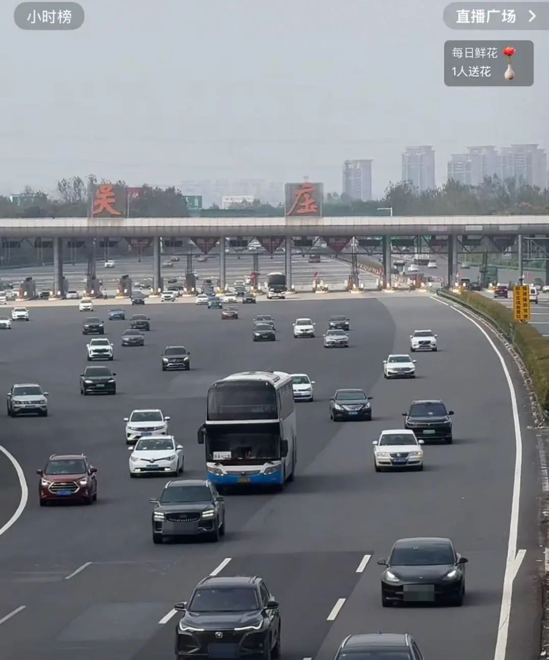▲博主直播吴庄收费站车辆通行画面(8日12时左右)