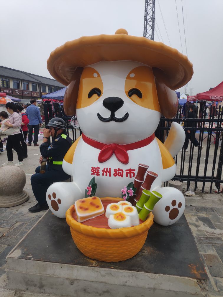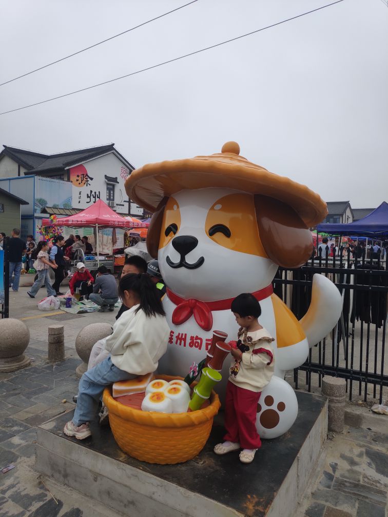 滁州狗市吉祥物成为孩子们游玩拍照打卡新地标。