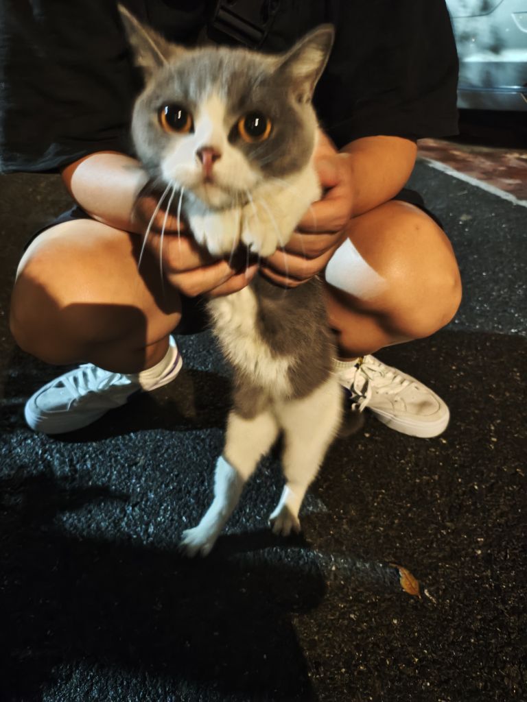 在东升邻里捡到一个蓝白猫 失主快和我联系 感觉猫才四五个月大