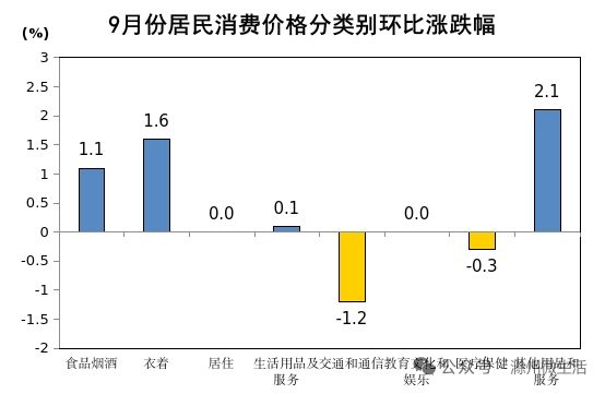 其他七大类价格环比三涨二降二平。其中,其他用品和服务价格上涨2.1%,衣着价格上涨1.6%,生活用品及服务价格上涨0.1%;交通和通信价格下降1.2%,医疗保健价格下降0.3%;居住价格和教育文化和娱乐价格与上月持平。
