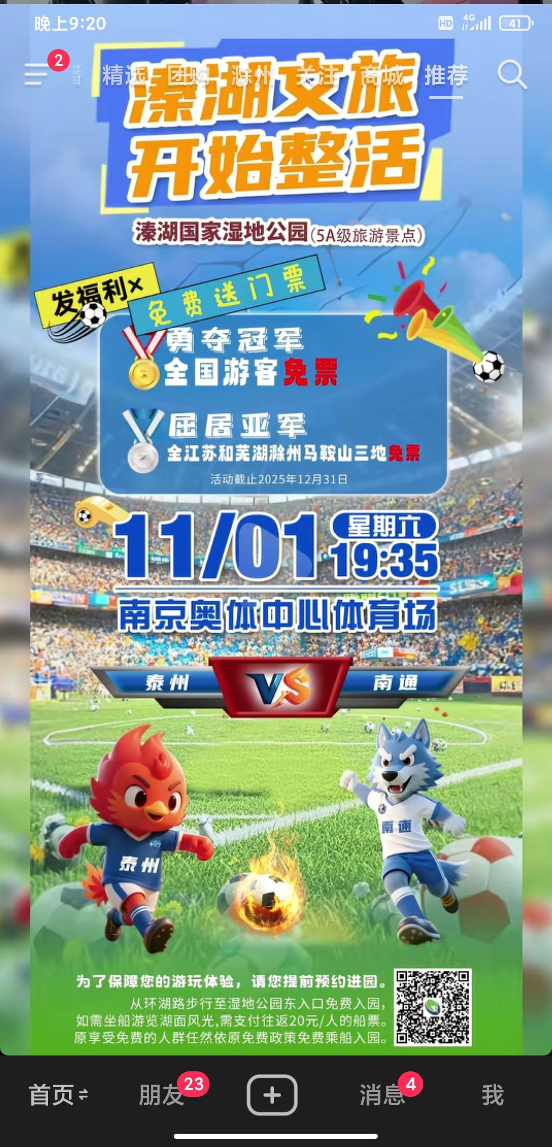 芜马滁免费?泰州文旅真够意思!本来上一场点球大战赢我家南哥一肚子不爽,这下可以释怀了