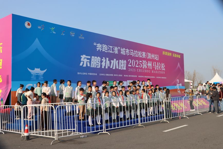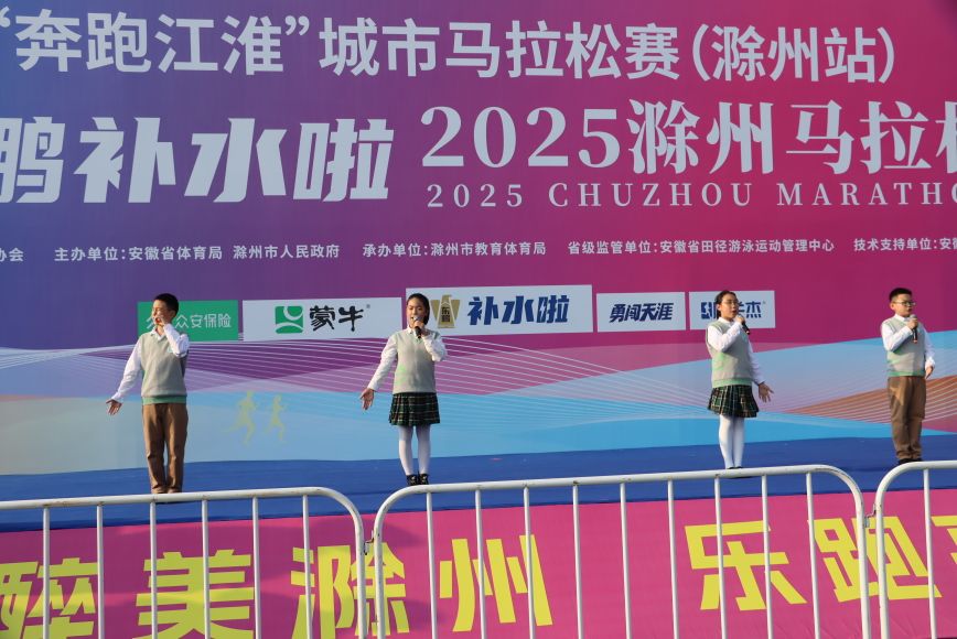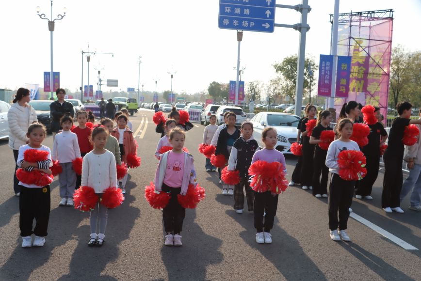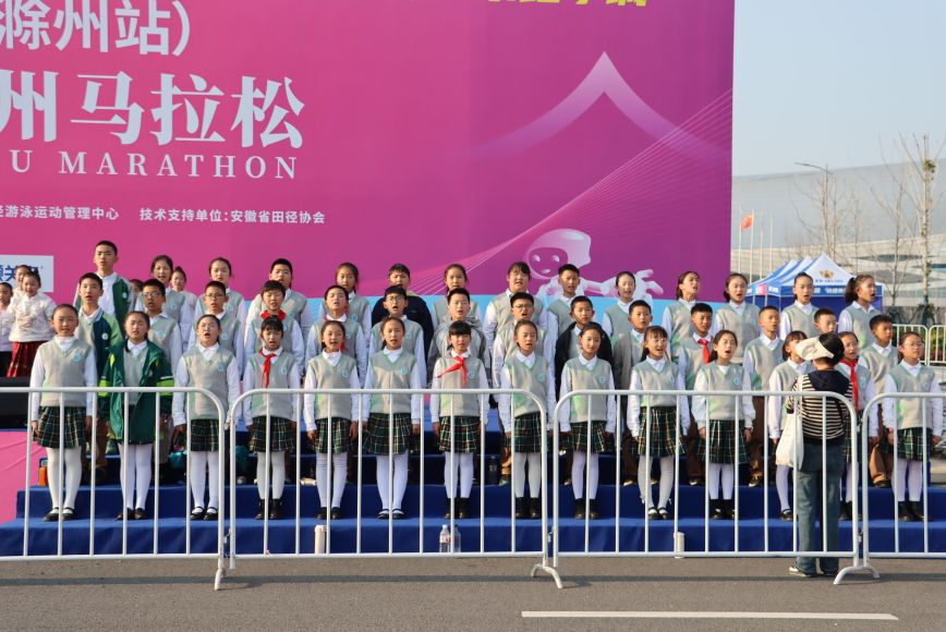 今天下午带着外孙,到“奔跑江淮”城市马拉松赛(滁州站)进行文艺彩排所看到的明天进行比赛现场的实况!
