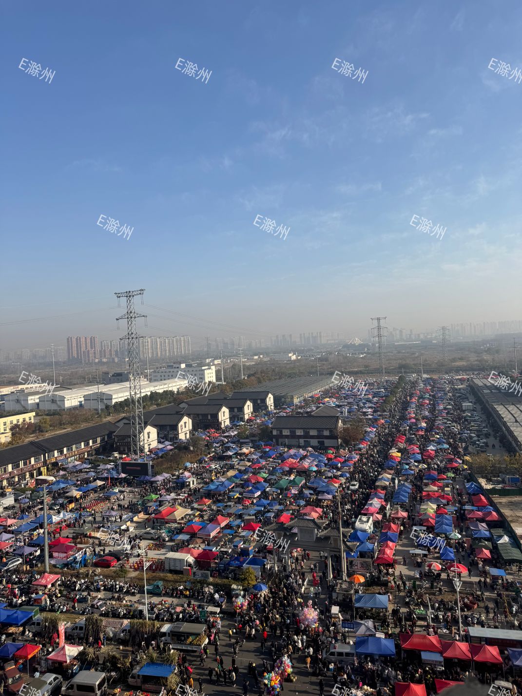 今天周日天气不错,滁州狗市大集又迎来人山人海,从高处俯看很是壮观!