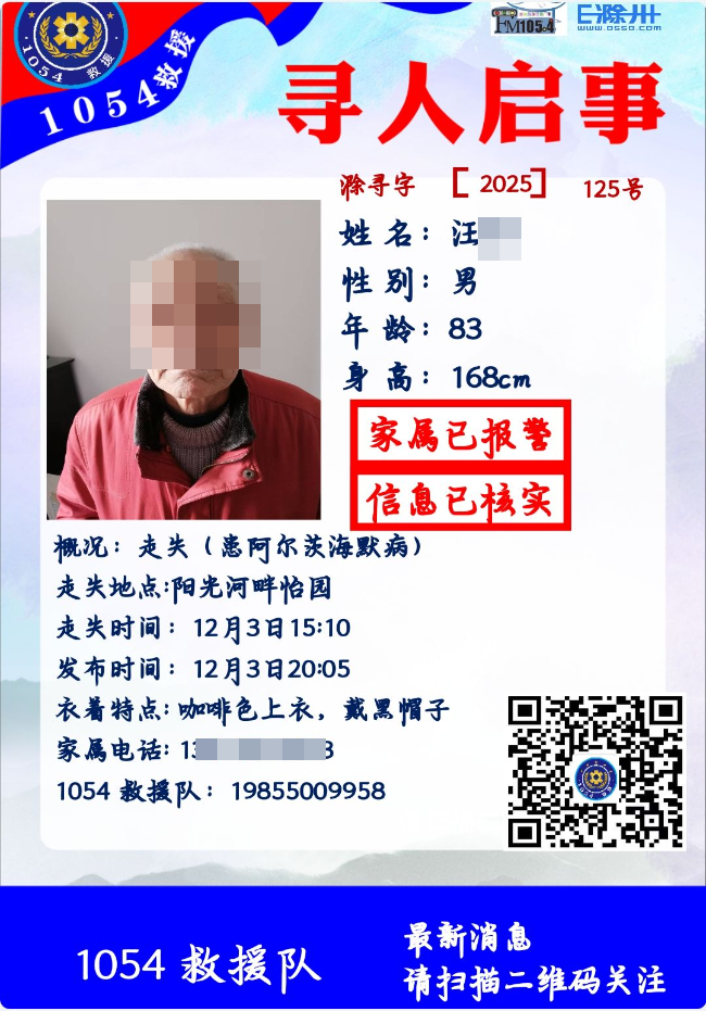 赠人玫瑰,手留余香[玫瑰][玫瑰]1054救援寻人信息,今天下午走失老人,请大家转发朋友圈,微信群。在外的朋友帮忙留意一下!帮助老人早点回家。谢谢大家[抱拳][抱拳]救援电话:19855009958