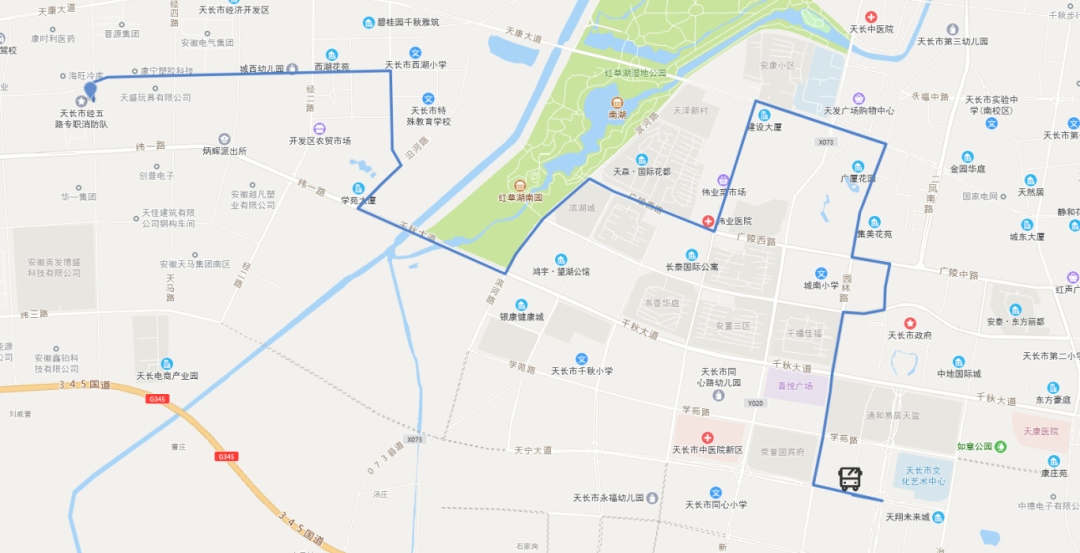 注:千秋府南苑、同心小学、全民健身中心站点不再停靠,前往全民健身中心的乘客可在天宁大道(荣誉国宾府)下车步行400米至全民健身中心