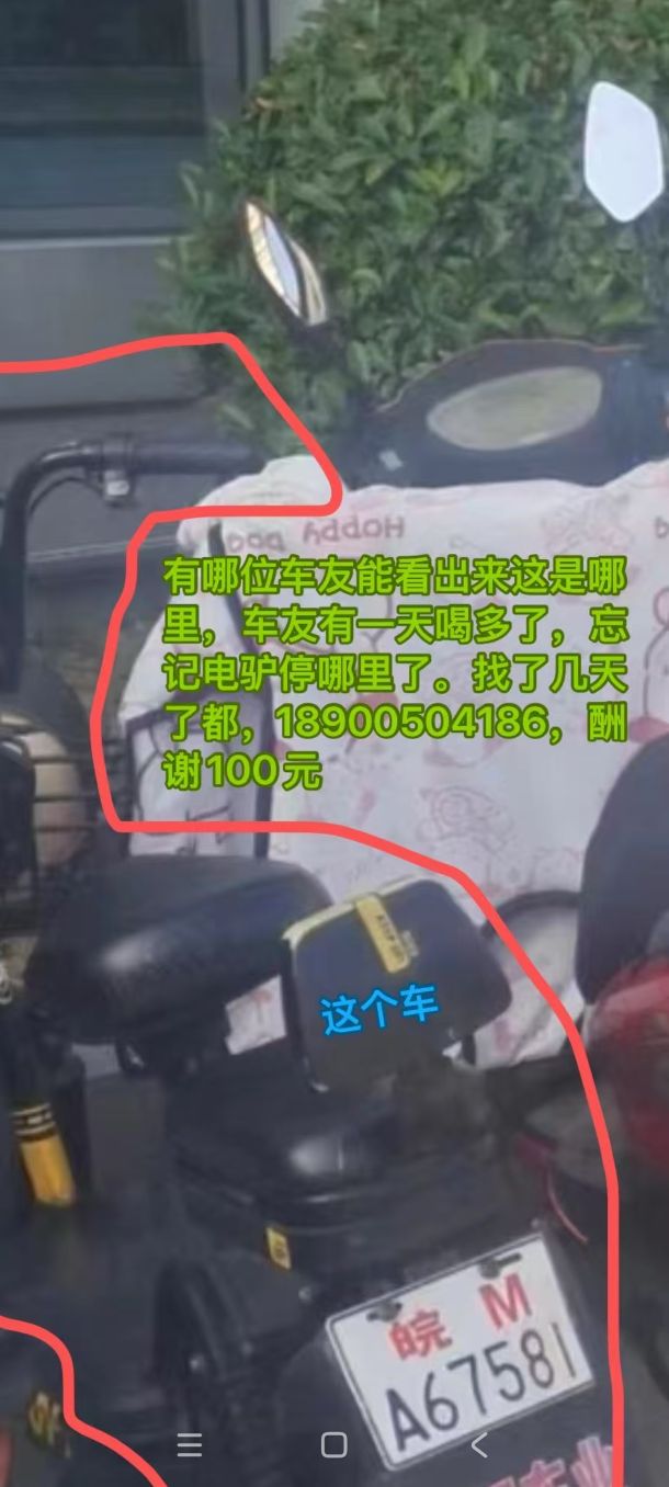 有没有滁州市老城区的“活地图”朋友救个急!我这记性也是没谁了,吃完饭直接断片——馆子在哪忘了,电动车停哪儿也懵了!主打一个两眼一抹黑!哪位大神先帮我找到车,100块红包立马奉上!等你们的好消息!