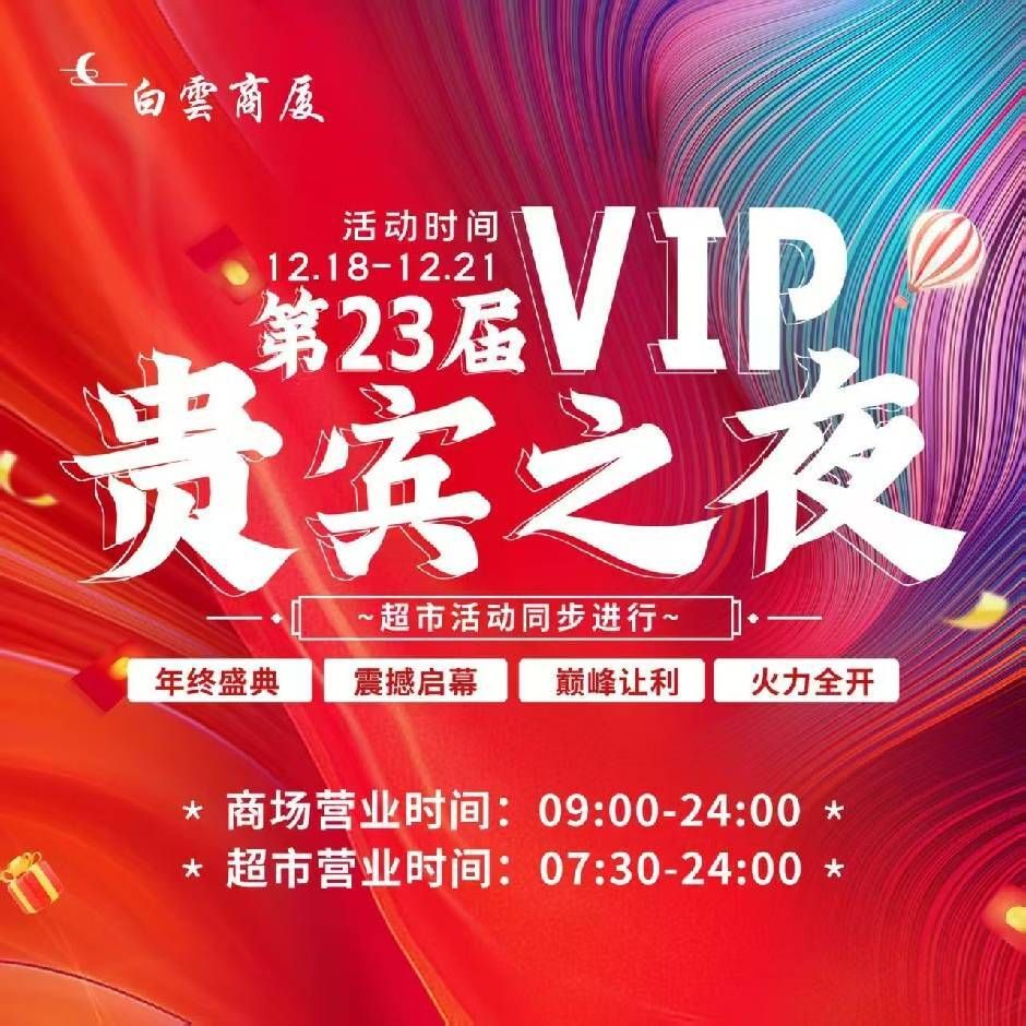 据悉,滁州白云商厦于12月18—21日开展第23届VIP贵宾之夜活动,商品优惠多多。