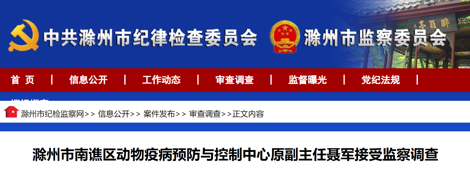 滁州市南谯区动物疫病预防与控制中心原副主任聂军涉嫌严重违法,目前正接受滁州市南谯区监委监察调查。(滁州市监察委员会)