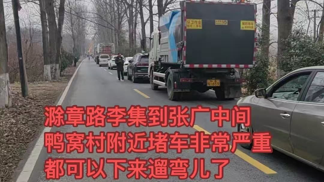 滁章路李集至章广段,鸭窝村附近目前正处于严重拥堵状态,通行效率极低。