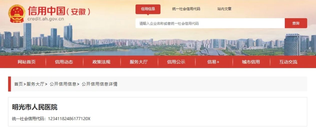 来源:信用安徽、明光市人民医院官网