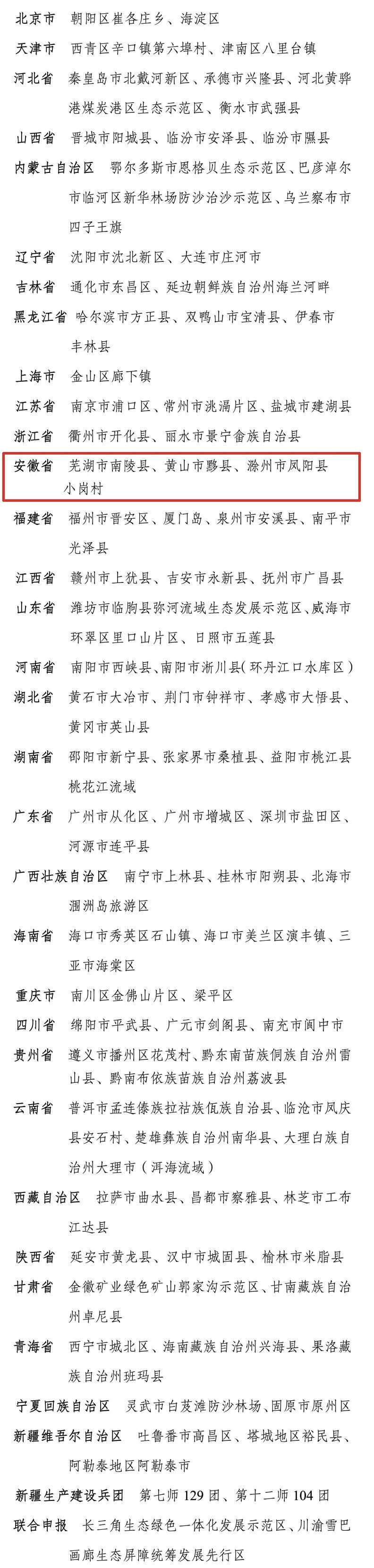 12月25日,生态环境部发布2025年“绿水青山就是金山银山”实践创新基地和生态文明建设示范区名单。其中,安徽省芜湖市繁昌区、黄山市祁门县、宣城市泾县获评2025年生态文明建设示范区。芜湖市南陵县、黄山市黟县、滁州市凤阳县小岗村获评2025年“绿水青山就是金山银山”实践创新基地。截至目前,全省累计成功创建“绿水青山就是金山银山”实践创新基地13个,国家生态文明建设示范区25个,总数位居全国前列。