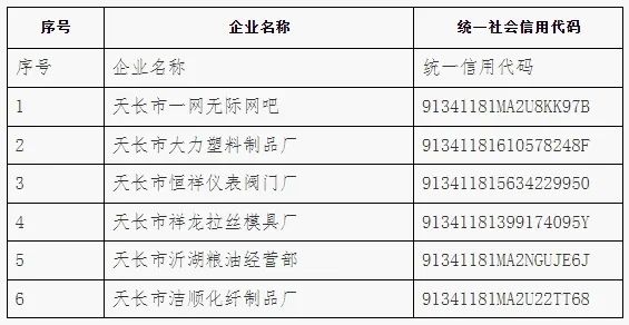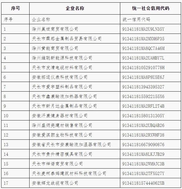 滁州巢斌商贸有限公司等二十三家企业(详细名单附后):