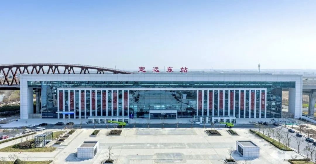 定远东站位于安徽省滁州市定远县,站型为高架式,站房位于线路下方。站房外观采用矩形框景形式,实现立面形式与站房功能的完美统一。